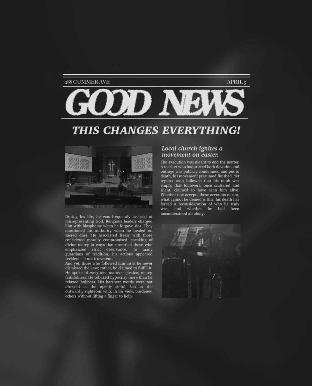 Join us this Easter Sunday at 9:30 AM or 11:30 AM for our Easter experience GOOD NEWS: This Changes Everything as we celebrate the hope that changes everything. Invite your friends and family and come experience it together.